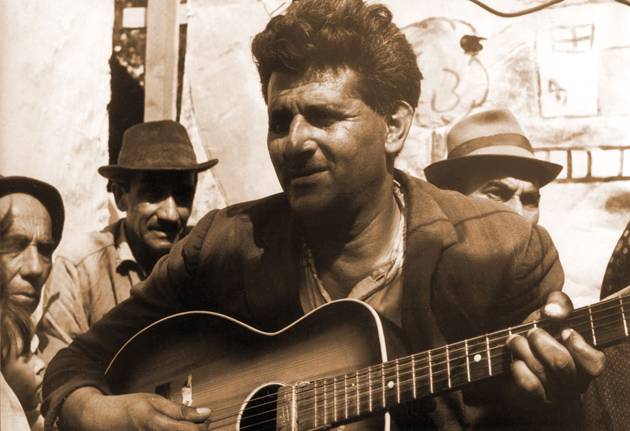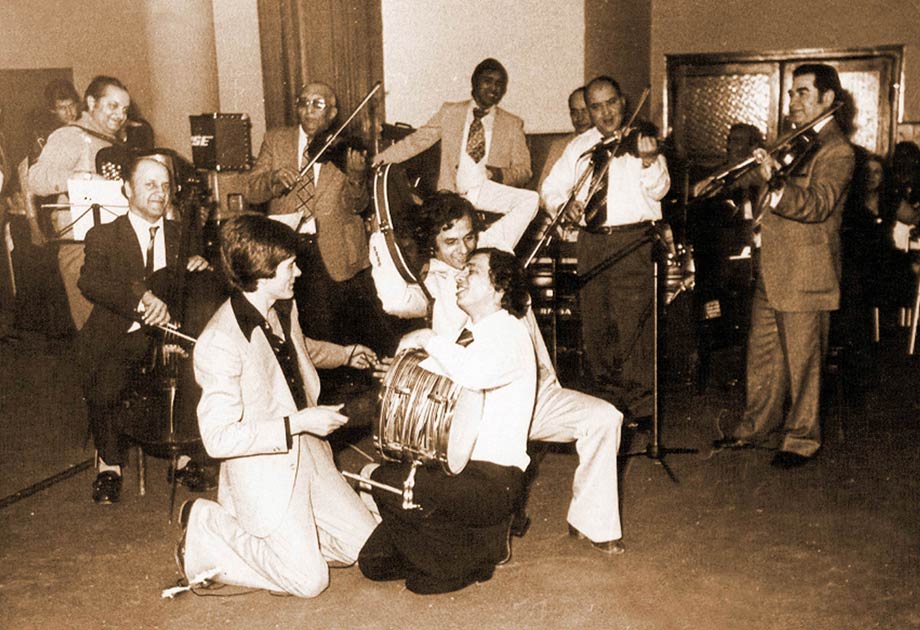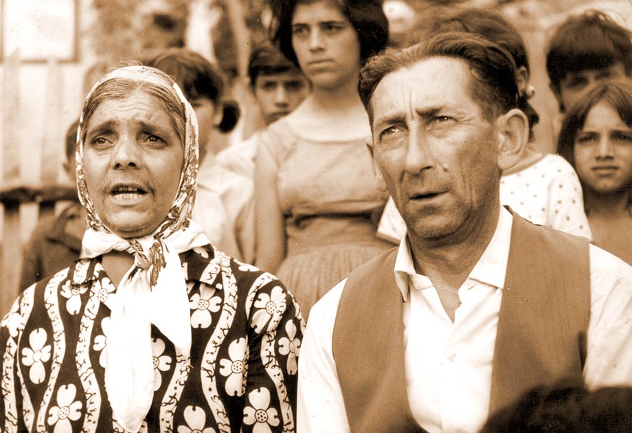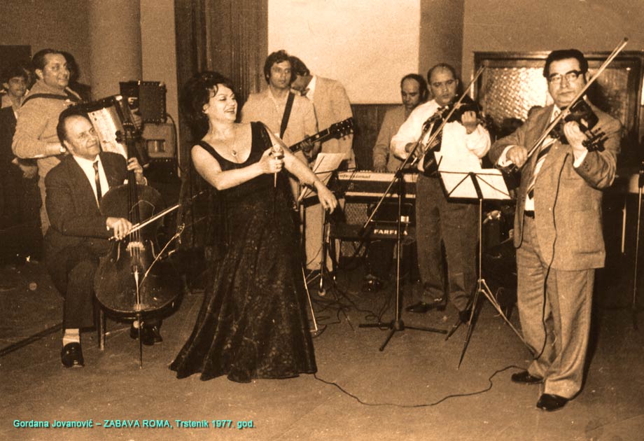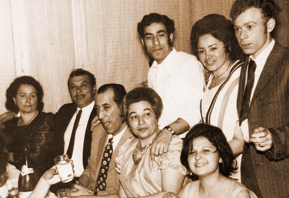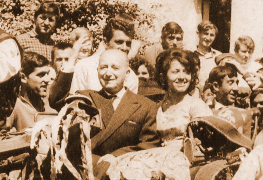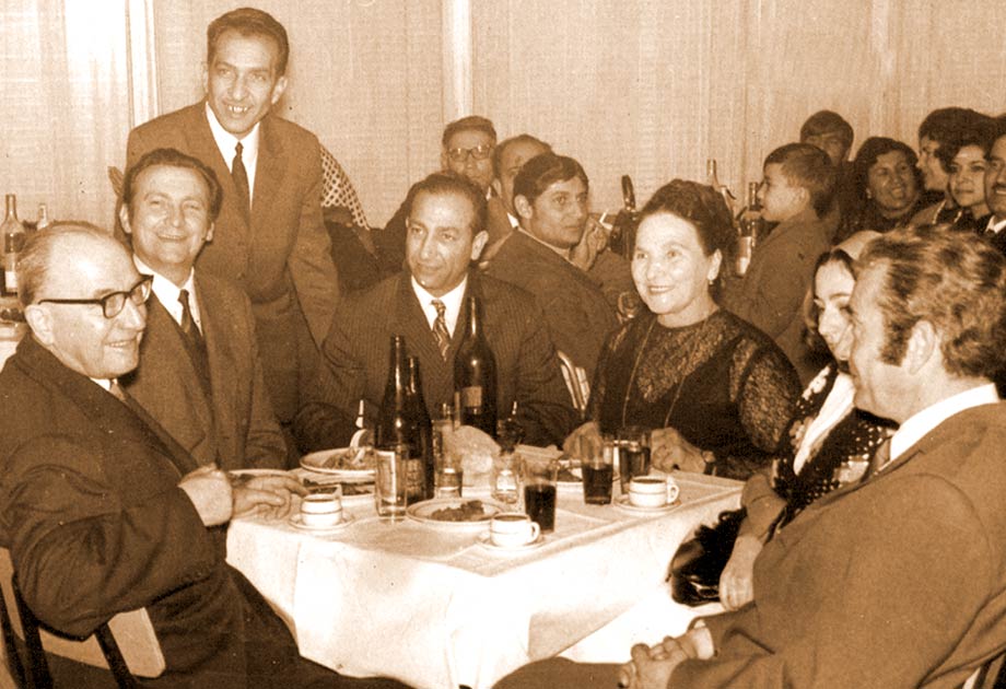 На ромској забави после пројекције филма седе, с’ лева: Др Сава, редитељ Ранчић, Мија Вујичић и Савина супруга Дара.